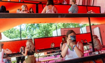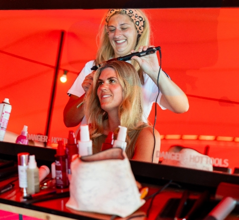 All housed inside a giant carpeted orange stretch tent, keeping you cool, dry, and feeling pampered throughout the festival.